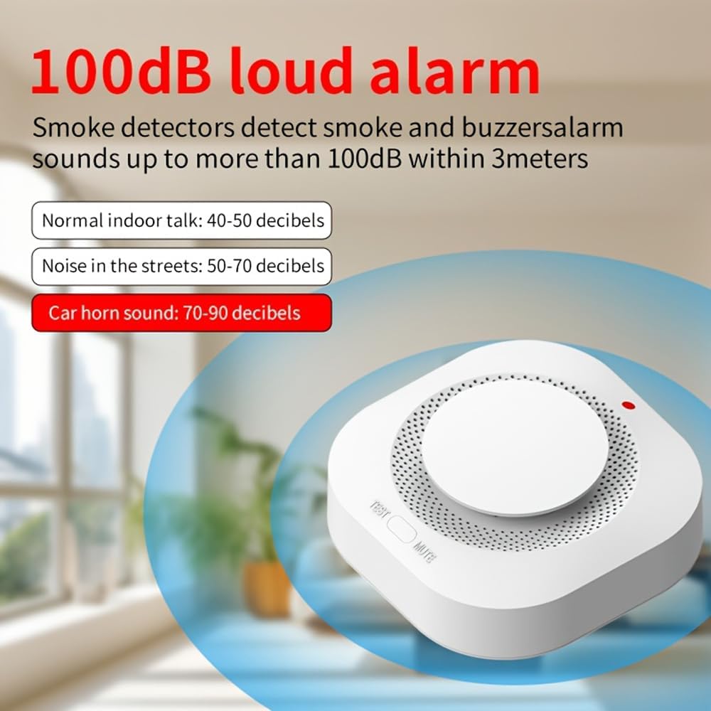 Specification: Photoelectric Smoke Detector Fire Alarm, Battery Operated, Smoke Alarm with Test Button & Low Battery Signal, LED Warning Light, 85-Decibel Alarm Sound, Easy Installation for Living Rooms and Bedrooms