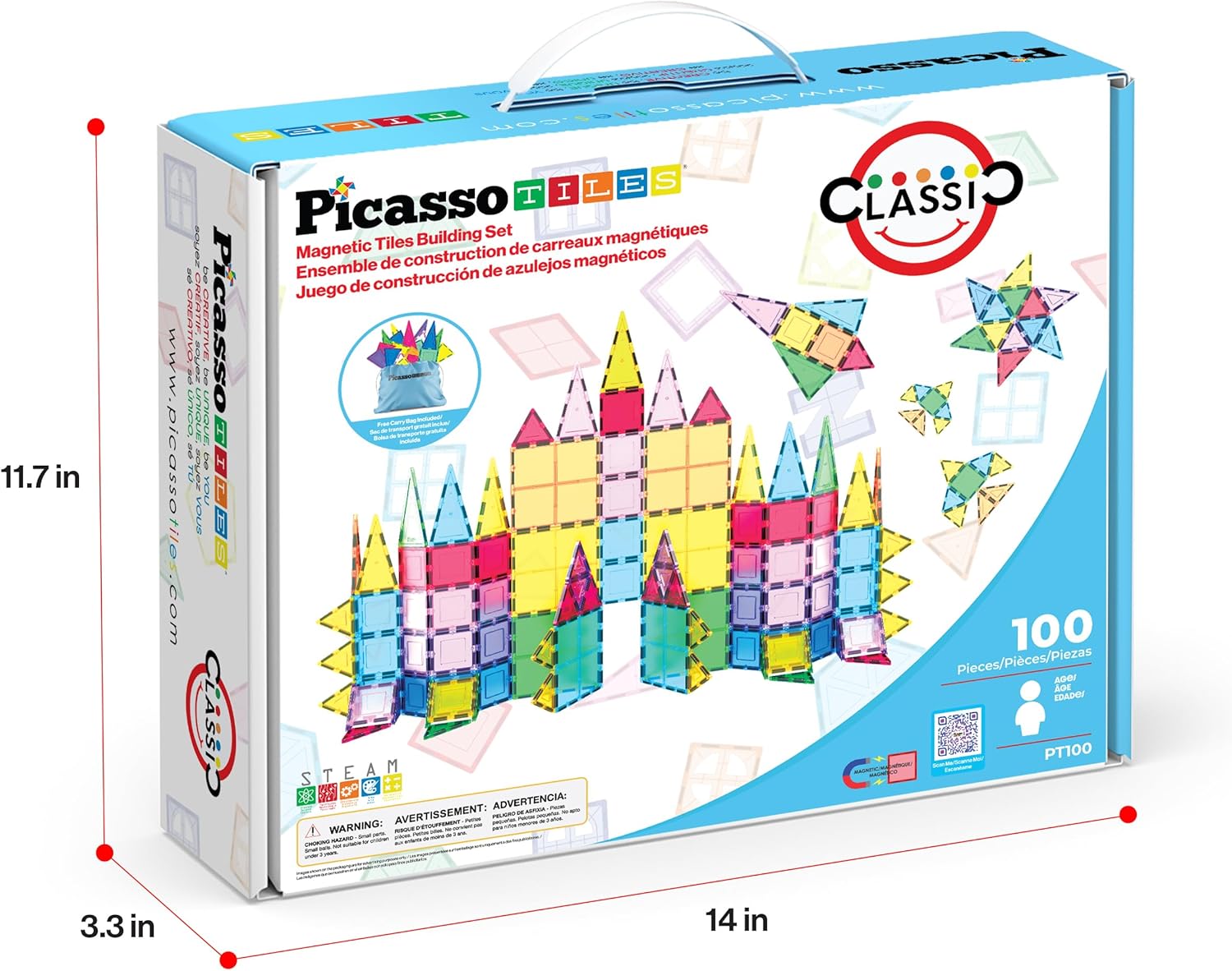 PicassoTiles 100 Piece Set 100pcs Magnet Building Tiles Clear Magnetic 3D Blocks Construction Playboards, Creativity Beyond Imagination, Inspirational, Recreational, Educational Conventional