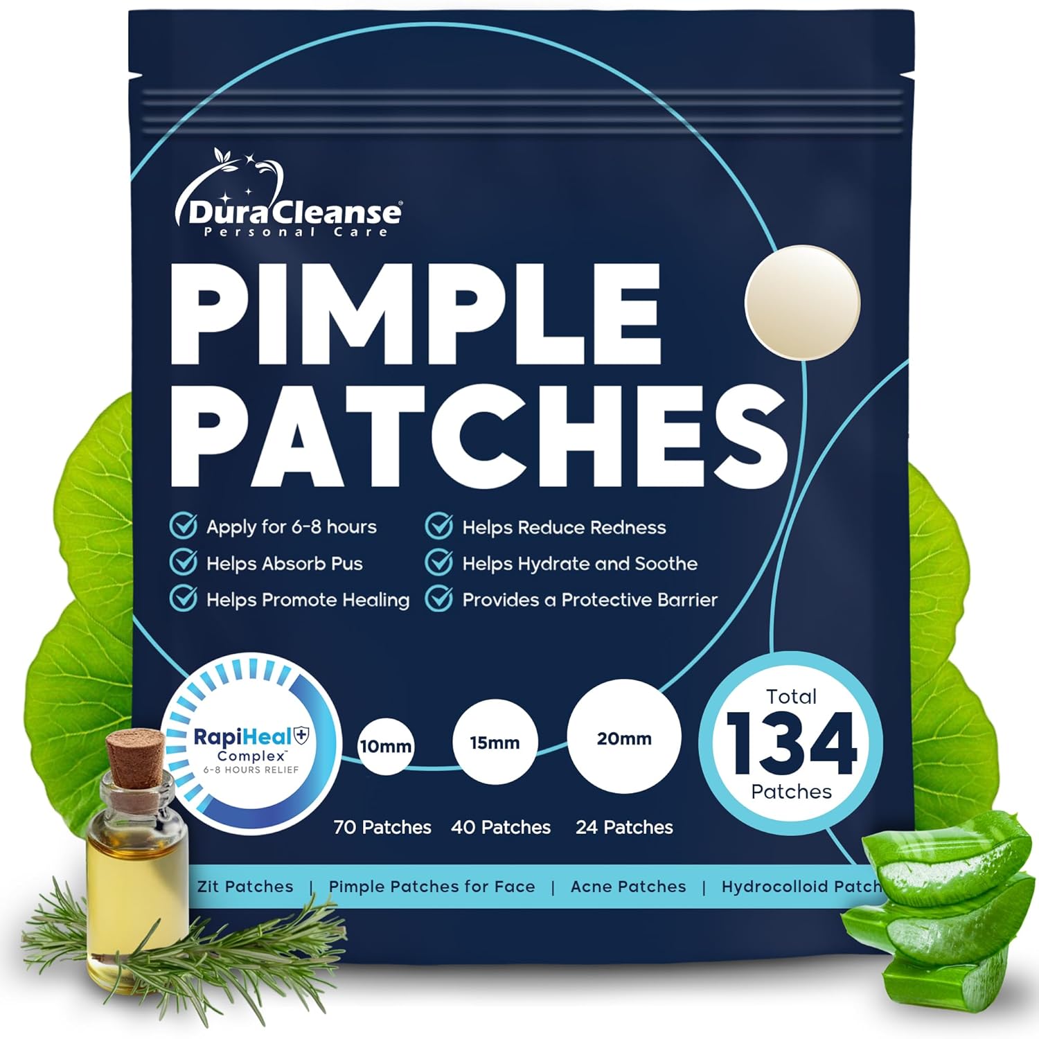 Pimple Patches for Face – 134 Count Hydrocolloid Acne Patches – Zit, Blemish, Cystic Acne Dots & Dark Spot Treatment – Invisible Clear Pimple Patch Stickers for Forehead, Chin, Nose, 3 Sizes (S, M, L)