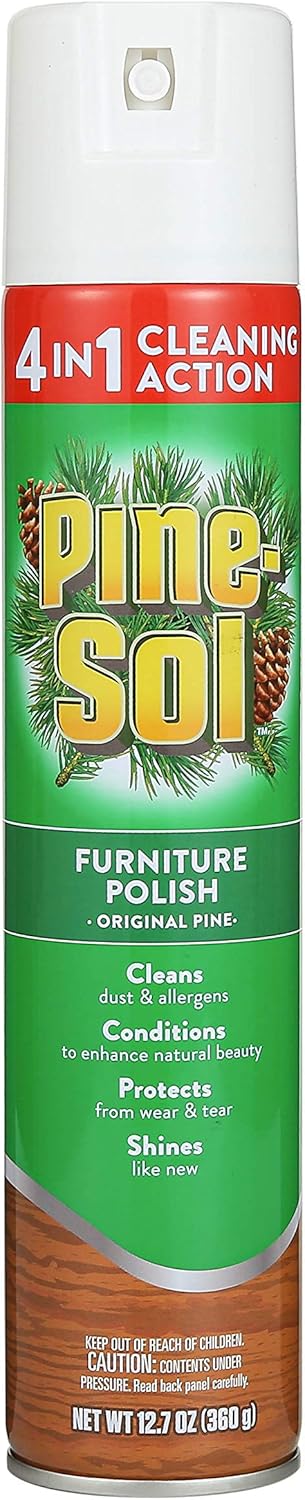 Pine-Sol’s furniture polish in the original pine scent cleans and shines your most valued furniture, including cabinets, paneling, and baseboards. This 4-in-1 cleaning action furniture cleaner cleans dust and allergens, conditions to enhance the natural beauty of your floor or furniture, protects from wear and tear, and shines like new. DIRECTIONS: Shake can well before using. To clean and polish your furniture and other surfaces, hold can at an angle and spray surface from about 8 inches away. Wipe immediately with a soft, clean cloth. For small items or surfaces near upholstery, spray on a cloth first, then polish. This product is not recommended for use on vinyl & leather surfaces. Test product on an inconspicuous area to check results. Do not spray or use on floors as it could leave them slippery. WARNINGS: Keep out of reach of children and pets. Do not get in eyes. Wash hands after use. Do not expose to heat or store at temperatures above 120 degrees F. Do not puncture or incinerate container even when empty. Do not spray near naked flame or incandescent material. Avoid contamination of food. Do not spray toward face. Use only as directed. Intentional misuse by deliberately concentrating and inhaling the contents can be harmful or fatal. Store in a cool, dry place. Protect from direct sunlight and prolonged exposure to water. This pine sol furniture polish is much like pledge furniture polish or old english furniture polish but it is not the same. This wood polish dusting spray furniture polish spray is the best furniture polish for wood. YOUR SATISFACTION IS OUR PRIORITY: If you have any questions or feedback on this product, please reach out to us via email.