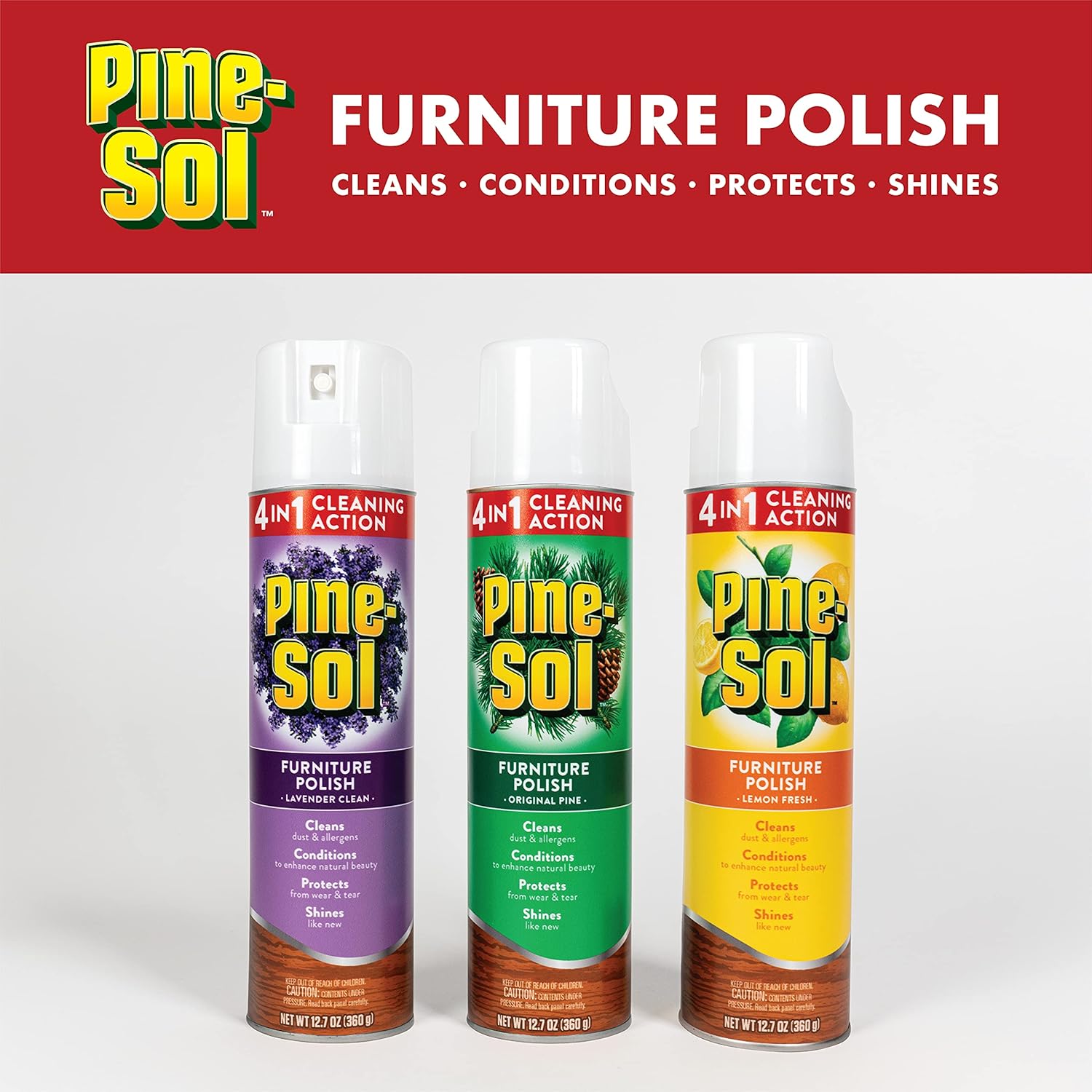 Pine-Sol Furniture, Polish 4in1 Cleaning Action Wood Polish Spray Wood Polish Spray for Your Cleans Conditions Protects and Shines Ounces Original Pine Scent, Yellow, Lemon, 12.7 Fl Oz