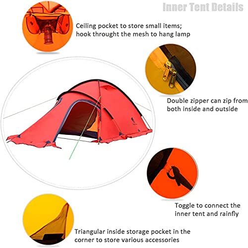 Pkfinrd Portable 2 Person 4 Season Tent Waterproof Backpacking Tent Double Layer All Weather for Camping Hiking Travel Climbing Mountaineering – Easy Set Up (Color : Yellow, Size : Large)
