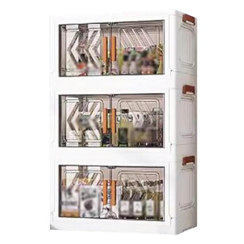 Plastic Storage Bins with Lids Folding Storage Box Cabinet Stackable Storage Bins with Wheels with Clear Doors for Dorm Room