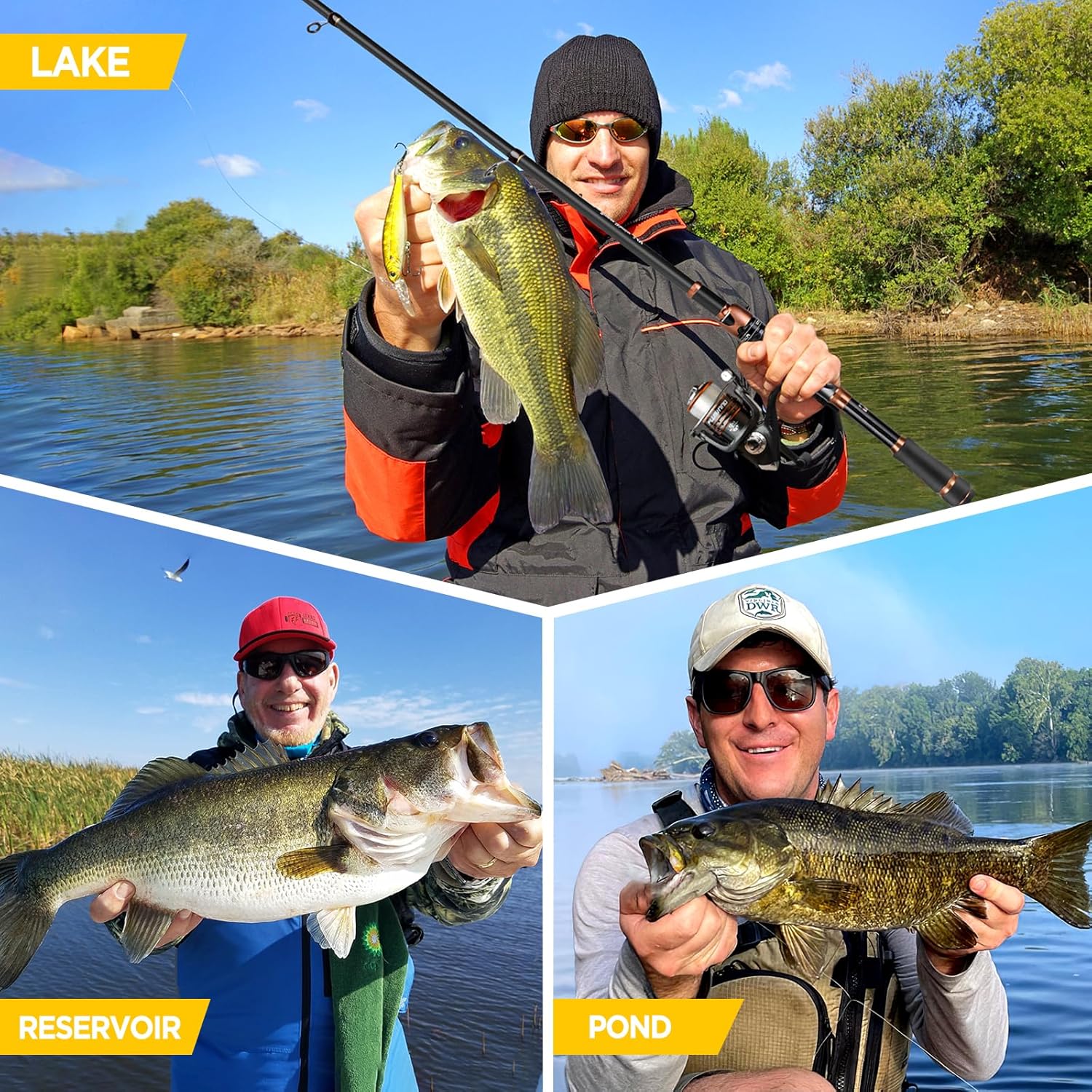 【Premium Components】- The Welded Stainless Steel Guides with Ceramic Inserts makes it more smooth and durable while dissipating heat more efficiently. The Exquisite Reel Seat Is Made of Corrosion Resistant CNC Machined Aluminum for a solid base and all-day. EVA handles are comfortable, durable and exceptionally slip resistant giving you maximum control over your fishing pole in all conditions.