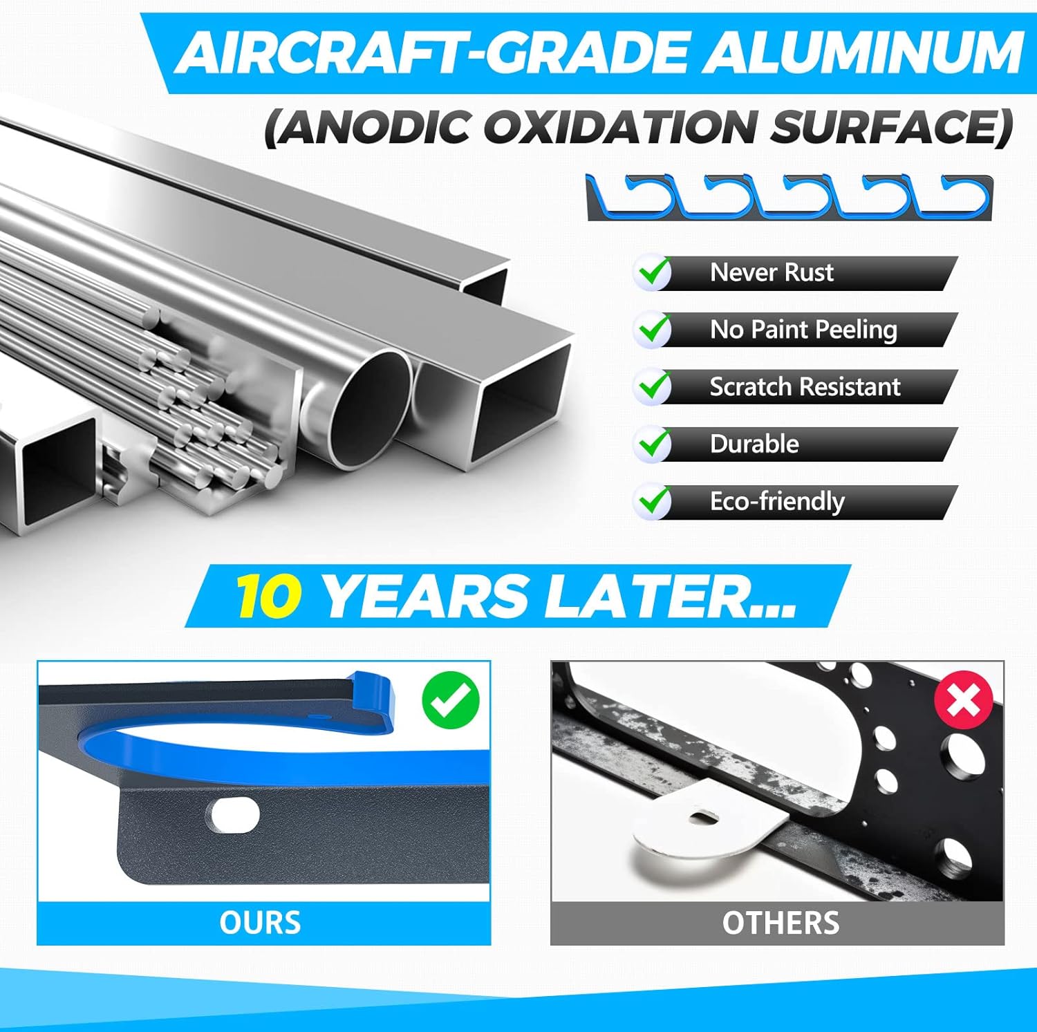 FIT ALL RODS OR COMBOS – After an amount of data research, we choose 1.77″/45mm as the diameter of the rod holders for garage, to ensure adapt to all fishing rods on the market! Including saltwater, spinning, casting, trolling fishing rods, part of fishing nets, etc. Meanwhile, one pack allow to hold up to 5 rods or combos in less than 18” of wall space. This is impossible for many other fishing rod storage on the market. The rod holders for garage maximize meet the needs of fishing enthusiasts!