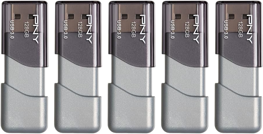 Specification: PNY 128GB Turbo Attaché 3 USB 3.0 Flash Drive 5-Pack – Grey, P-FD128X5TBOP-MP, 100MB/s, Light-Weight Durable – Data Storage and Transfer