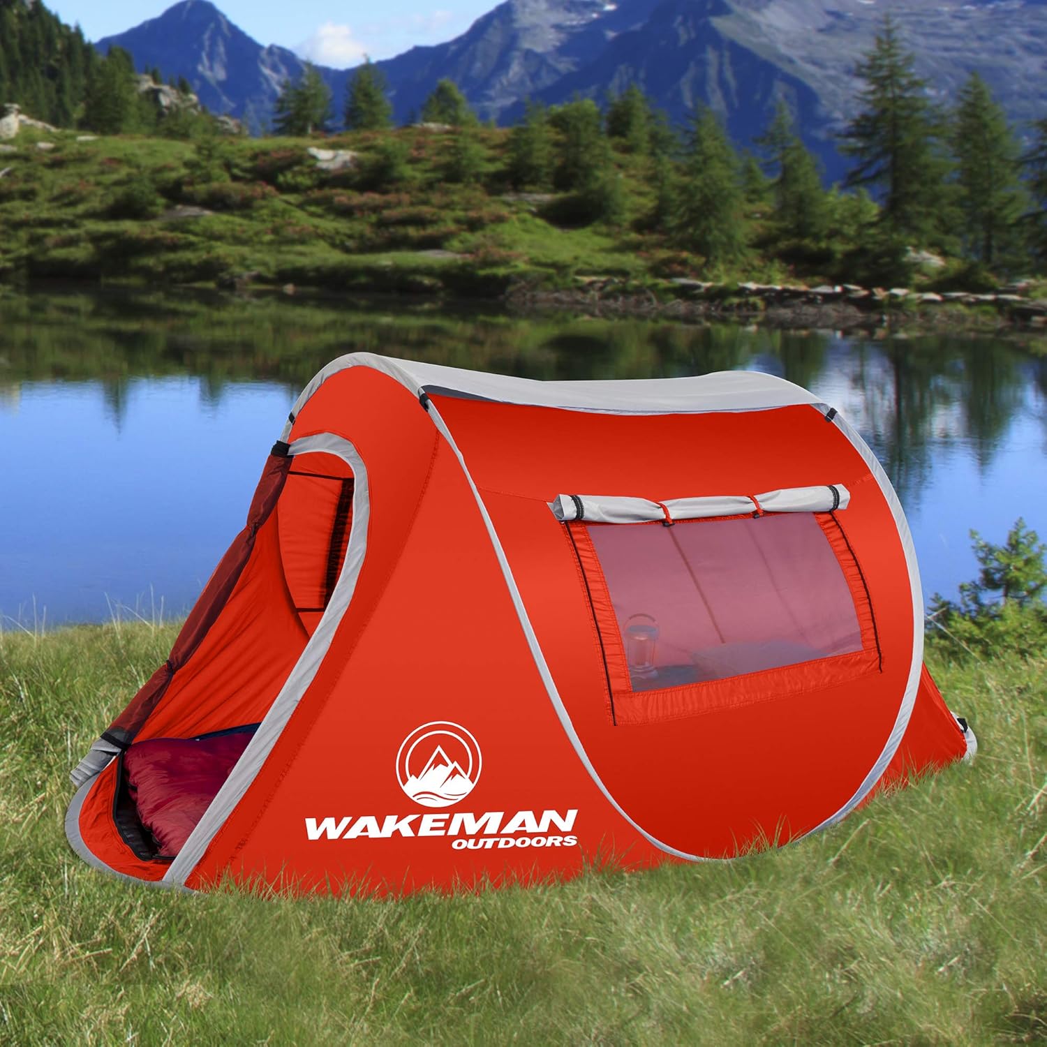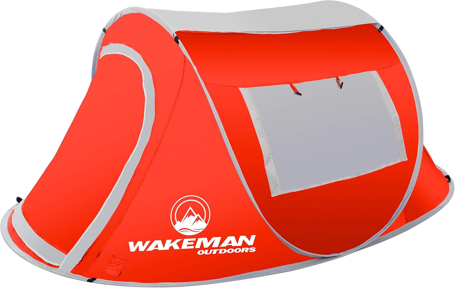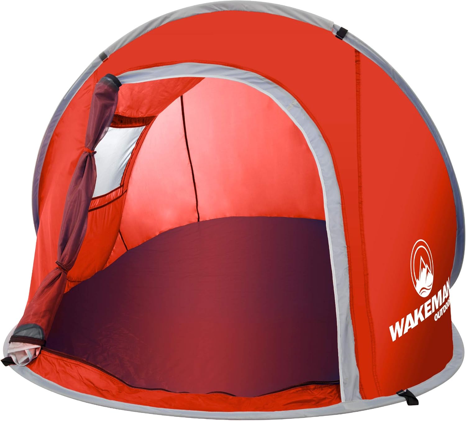 Pop-up Tent 2 Person, Water Resistant Barrel Style Tent for Camping with Rain Fly and Carry Bag, Sunchaser 2-Person Tent by Wakeman Outdoors (Red)