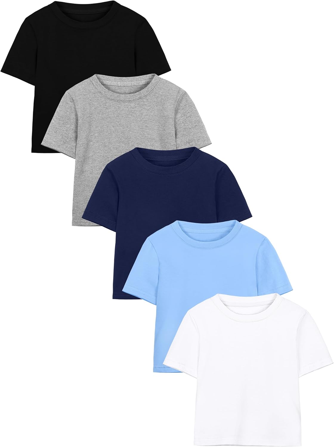 Poroka 5 Pack Boy Shirts Toddler Short Sleeve Cotton T-Shirt Cloth Summer Crew Neck Tops for Kids
