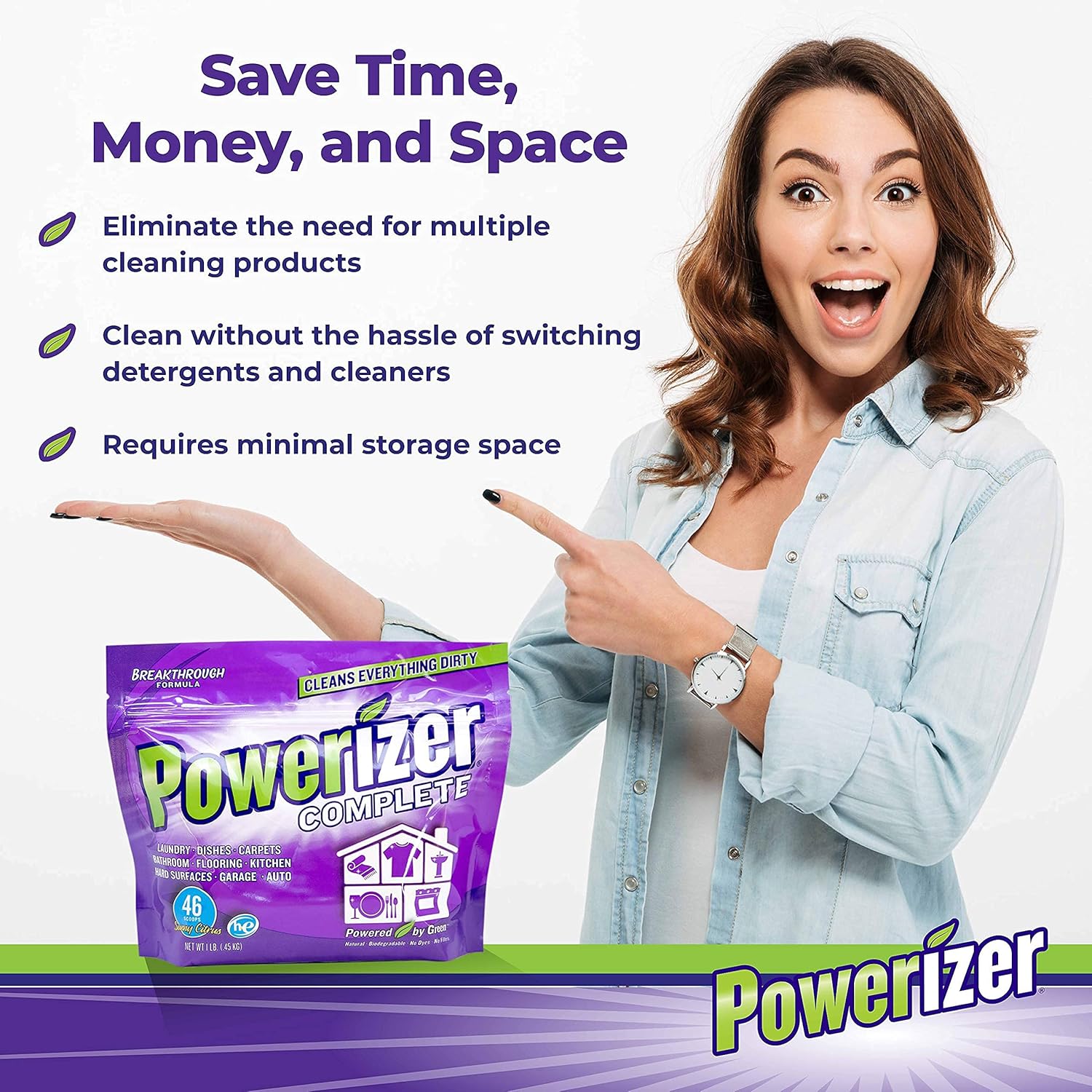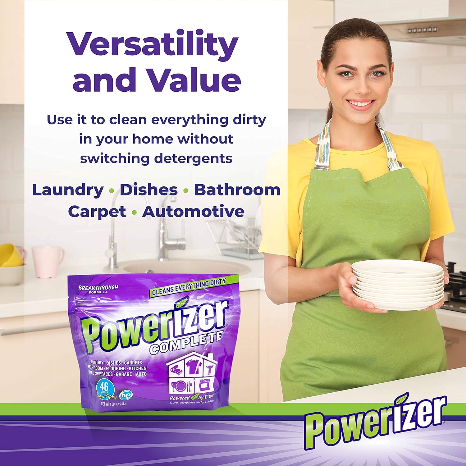 SAVE MONEY with this powerful multipurpose cleaning powder detergent. This powder cleaner is not just a laundry powder and dish detergent, use it to clean everything in your home – kitchen, bathroom, walls, appliances, carpet and upholstery, and even your car interior. If it needs cleaning, it needs Powerizer.
