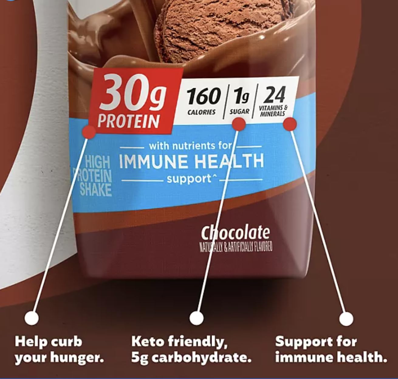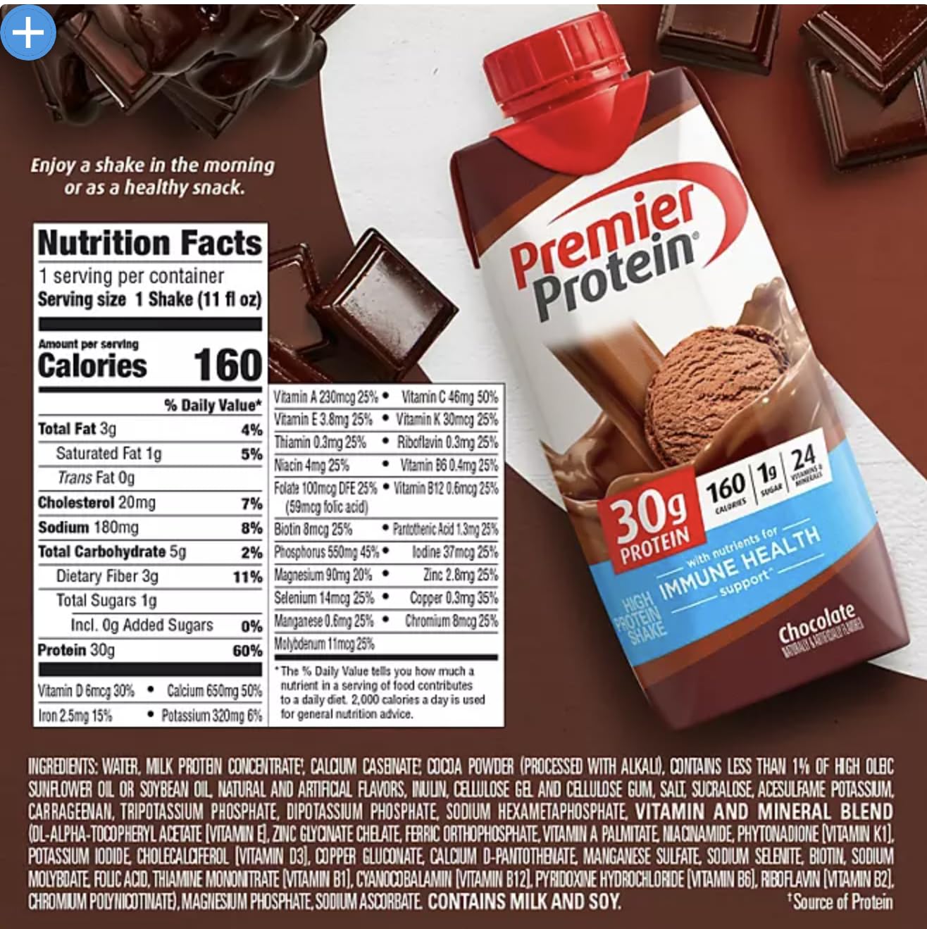 Regardless of your fitness objectives, these Protein Shakes Chocolate flavor 11 fl oz have got you covered. Each shake is packed with 30 grams of protein, 160 calories, 24 essential vitamins and minerals, and boasts a low-fat content. Fueled by a unique blend of milk protein, casein, and whey protein, these shakes efficiently support muscle function both rapidly and over an extended period, aligning with your fitness goals. Whether you opt for a shake as a meal replacement or a wholesome snack, they’re ideal for on-the-go breakfasts, afternoon pick-me-ups, or pre- and post-workout replenishment. Enjoy them as is, or get creative by blending with your preferred fruits and vegetables for a tasty smoothie or incorporating into cereal or oatmeal.