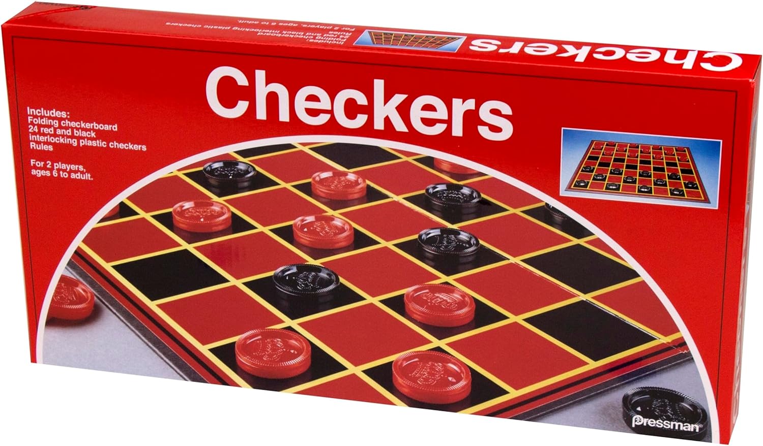 Checkers is a strategy board game for two players which involves diagonal moves of uniform game pieces and mandatory captures. Not only that, it is a necessary keystone to any game closet, and this is the perfect set! This classic game set includes the game board, solid interlocking plastic checkers, and complete instructions. For 2 players, ages 6 and up.