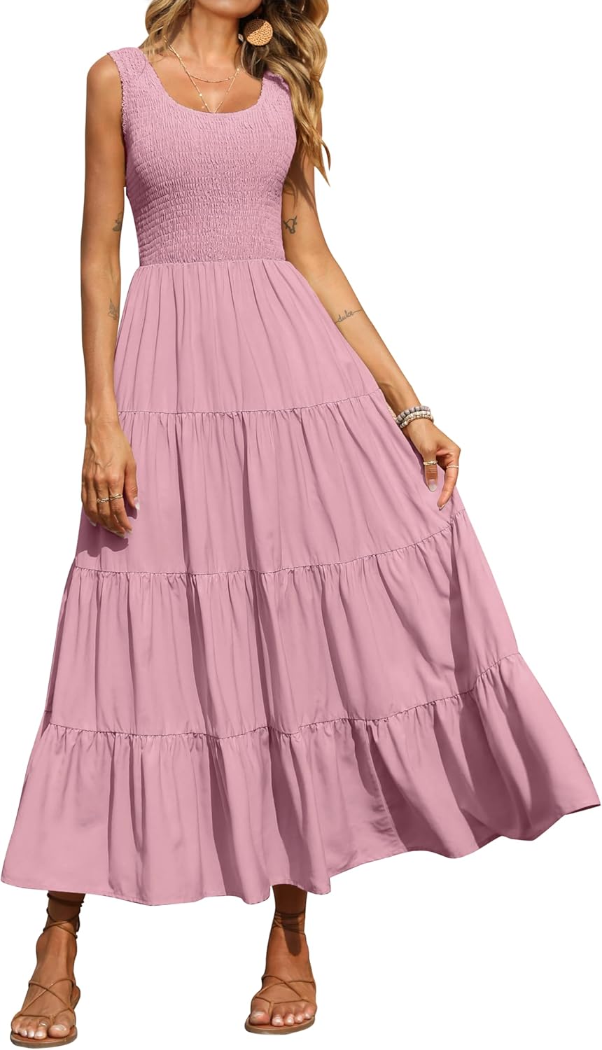PRETTYGARDEN Smocked Tank Casual Summer Dresses for Women 2026 Maxi Dress