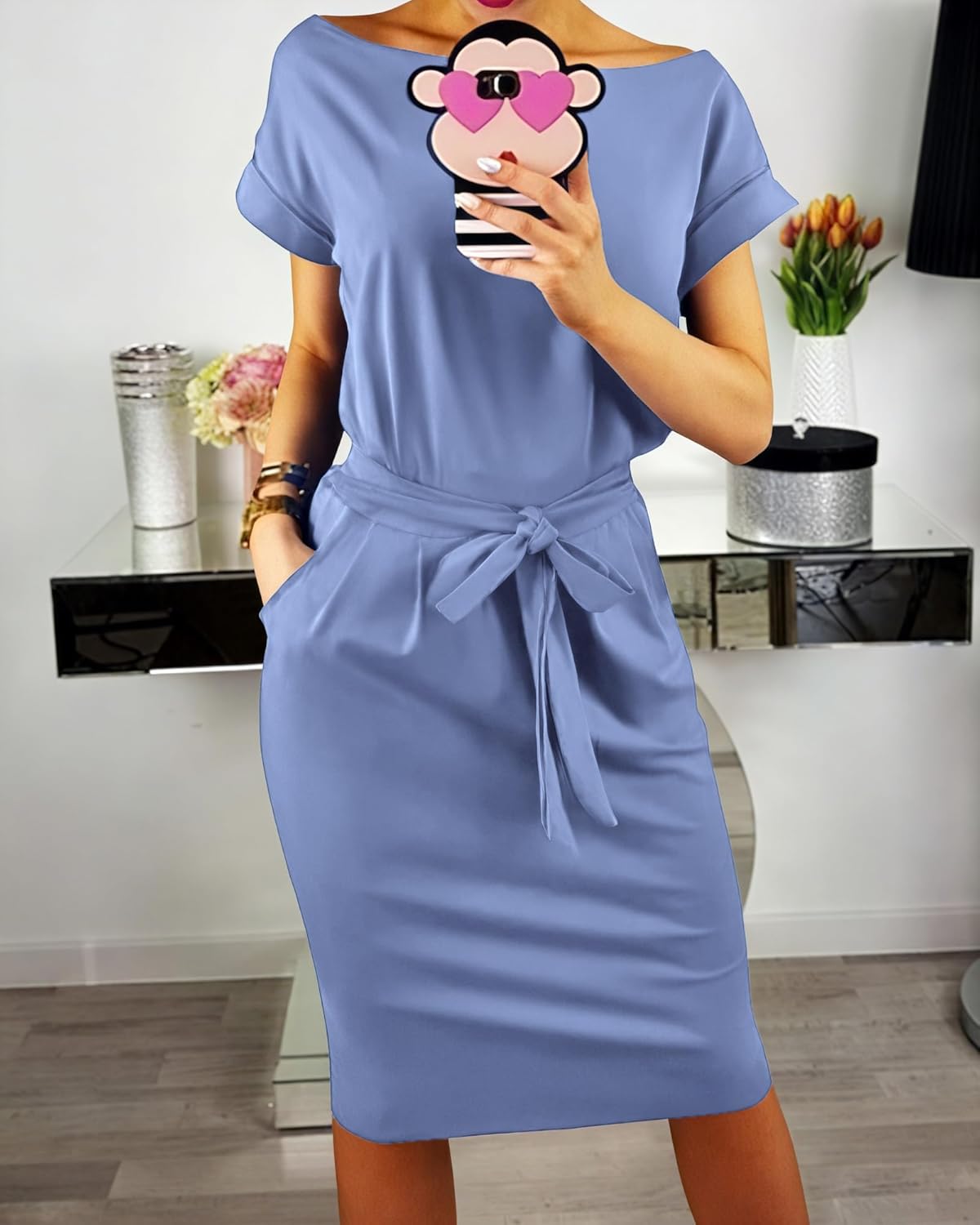 Soft Breathable Fabric Dress Suit For Spring Summer And Fall,Bring You Great Wearing ExperienceHigh Waist Belt Sewn On Two Sides Matching By YourselfTrendy Pencil Dress With Two Sides PocketsBodycon Style Can Outline Your Beautiful Body Curve