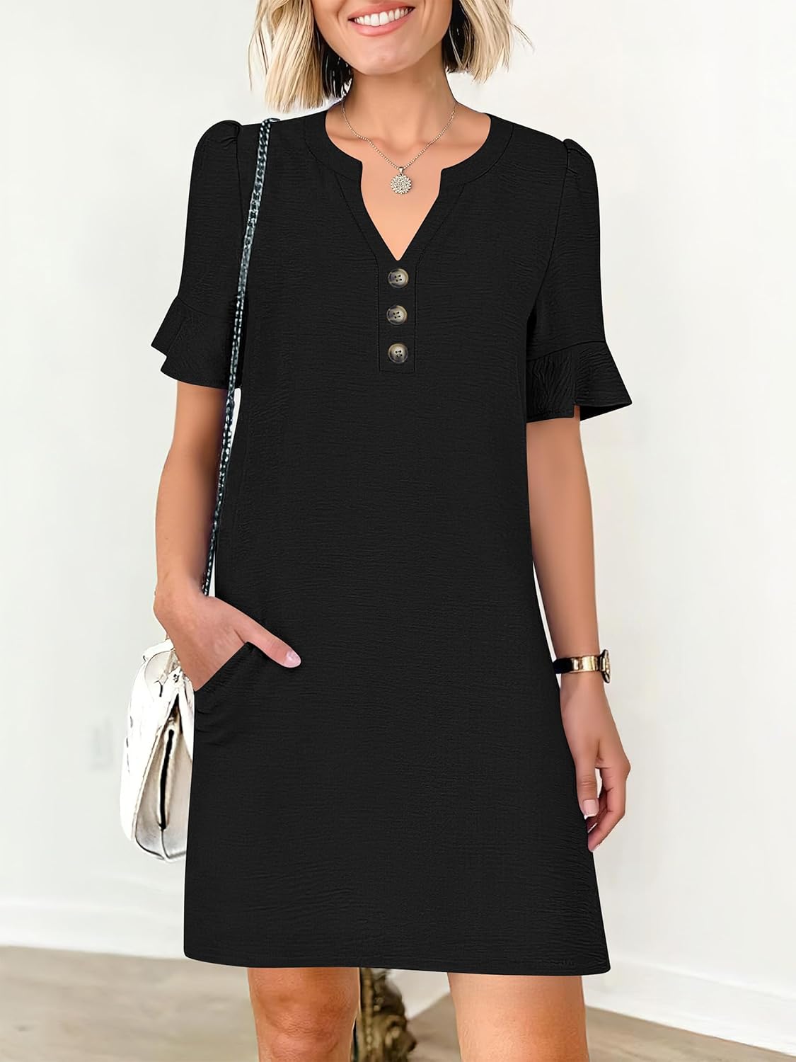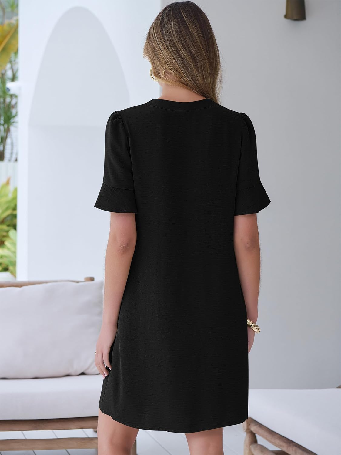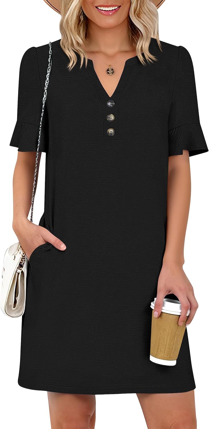 Prinbara Womens Summer Casual Dresses Ruffle Short Sleeve V Neck Button 2026 Spirng Vacation Beach Loose Boho Shift Dress