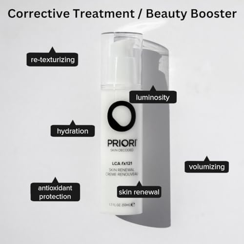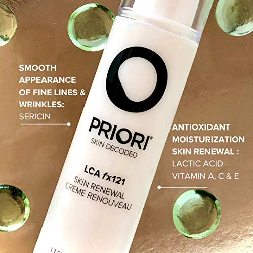 PRIORI Skincare Skin Renewal Cream with Lactic Acid Retexturizing Face Moisturizer for Dark Spots, Fine Lines & Wrinkles, Acne Scars Vitamin C, E, Fragrance Free Women & Men Skincare 1.7 fl oz