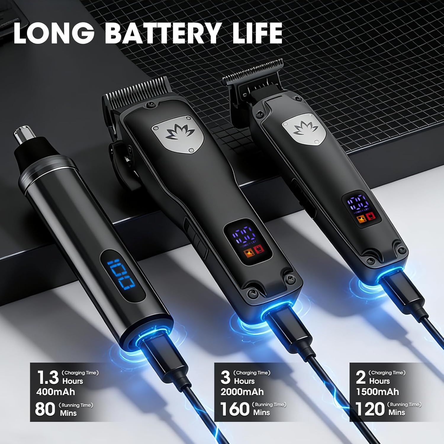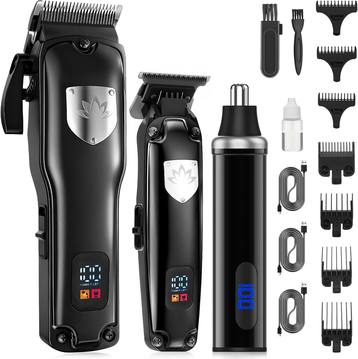 Professional Hair Clipper Set for Men, Cordless Hair Trimmer, Nose & Ear Trimmer, 3 in 1 Barber kit with LCD Display, Adjustable Length, Cordless & Travel-Friendly, Home & Beard Grooming Kit