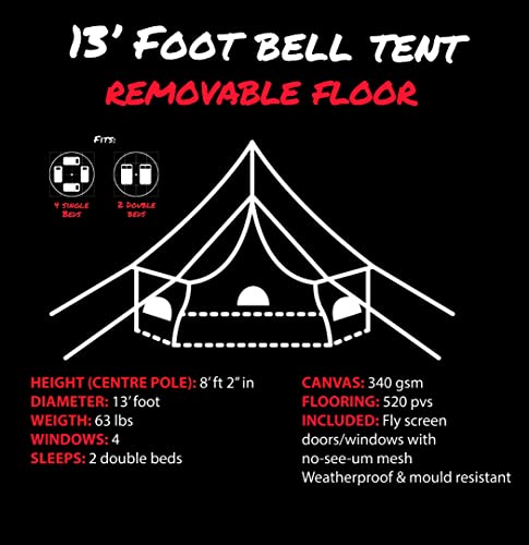 Psyclone Tents Removable Floor 4 Windows 4m/13.12ft Luxury Outdoor All Weather 6-8 Person Cotton Canvas Yurt Medium Bell Tent for Family Camping Glamping Hiking and Festivals