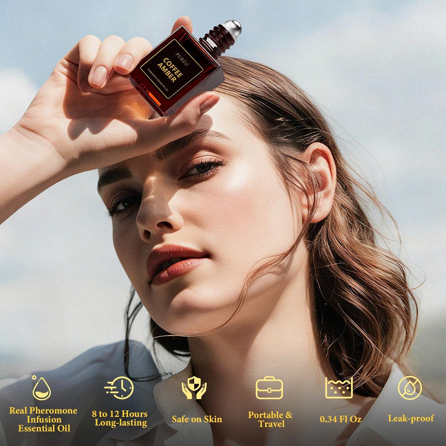 PUREU Pheromones Perfumes for Women, Long Lasting Pheromones Oil for Women Coffee Amber Perfume, Roll On 0.34FL OZ/10ML Travel Size Essential Oil Fragrance Eau De Parfum, Made in USA