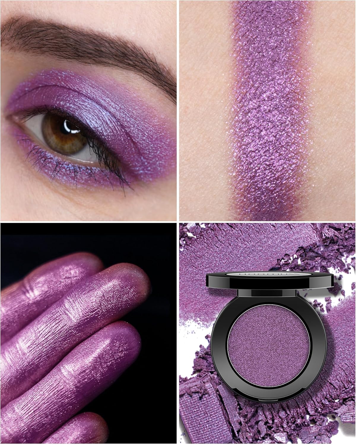Handmade Eyeshadow: The purple shimmer eyeshadow is handmade one by one, high pigmented and natural bright, Each pod contains 1.8 grams of loose mineral eyeshadow powder, enough for multi-looks with each color