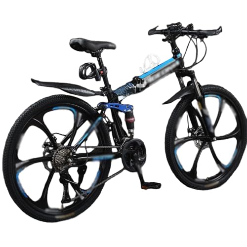 QUANBU 24 26 Inch Folding Mountain Bike 21-Speed Foldable Mountain Bicycle with Dual Disc Brakes 6 Spoke Wheels Mountain Bikes,Dual Suspension Design for Adult Men Women