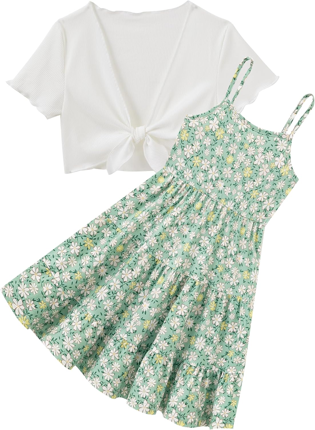 RAISEVERN 7-14Y Girls Adjustable Strap Sleeveless A Line Dress with Cardigan 2 Piece Set