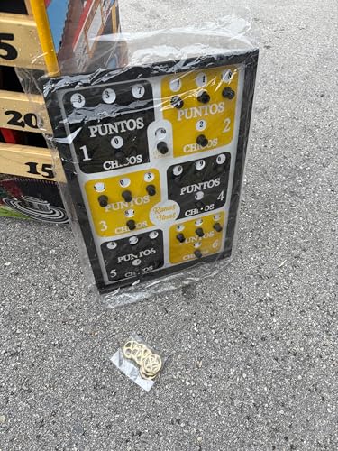 INCLUDES EVERYTHING / TODO INCLUIDO: The Rana game set includes a full standing board and table, six bronze rings for aiming and scoring, and a score board for keeping track of points, making it a complete game that is ready to play. El set de juego de Rana incluye un tablero y mesa de pie completo, seis anillos de bronce para apuntar y tirar, y un marcador para llevar la cuenta de los puntos, convirtiéndolo en un juego completo y listo para jugar.
