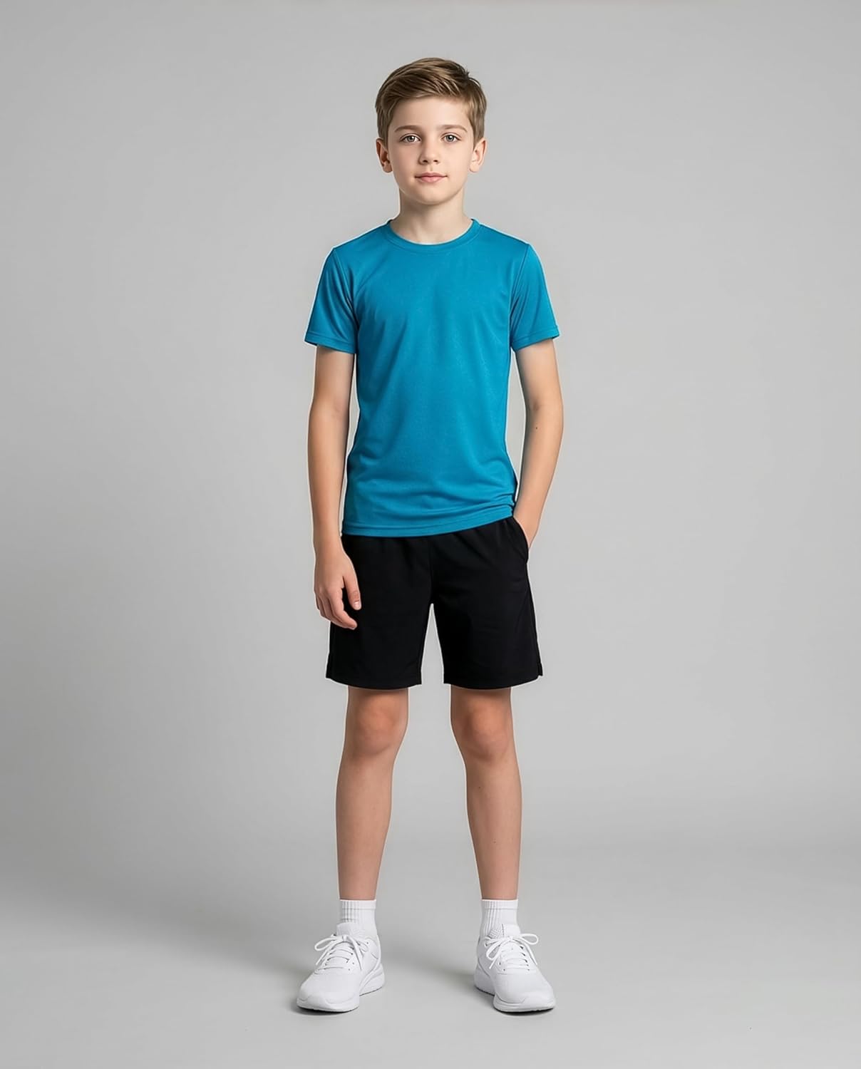 Real Essentials 5 Pack: Youth Dry-Fit Wicking Active Athletic Performance Short Sleeve T-Shirt Boys & Girls Shirts