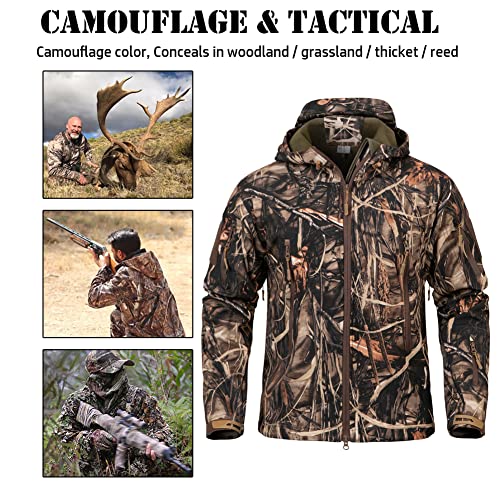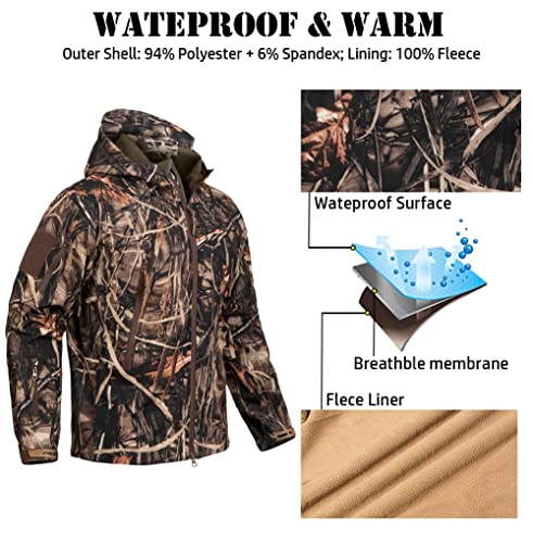 ReFire Gear Men’s Soft Shell Military Tactical Jacket Outdoor Camouflage Hunting Fleece Hooded Coat