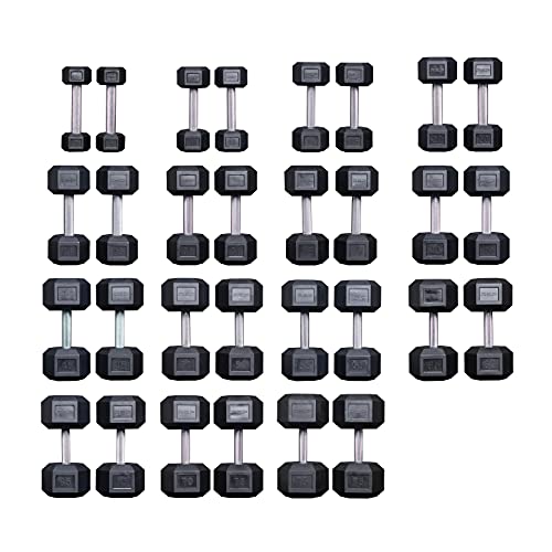 What’s Included:: One pair of 5, 10, 15, 20, 25, 30, 35, 40, 45, 50, 55, 60, 65, 70, 75 lb rubber coated hex dumbbells. DOES NOT INCLUDE RACK.