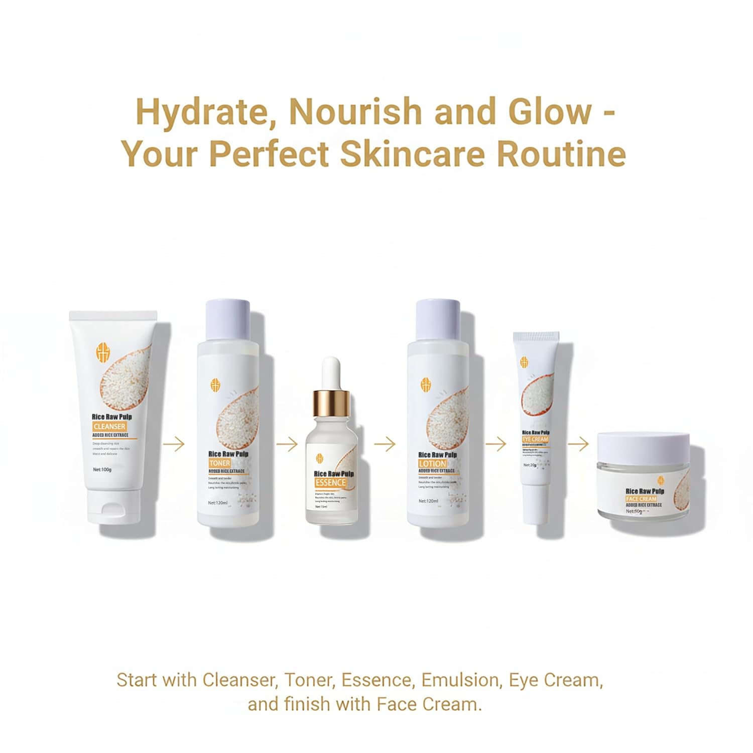 Rice Skin Care Set for Teen Girls & Women – 6-Piece Facial Care Kit with Rice Extract, Anti-Aging, Moisturizing & Nourishing Teenage Skincare Gift Set for Glass Glowing, Hydrated Skin