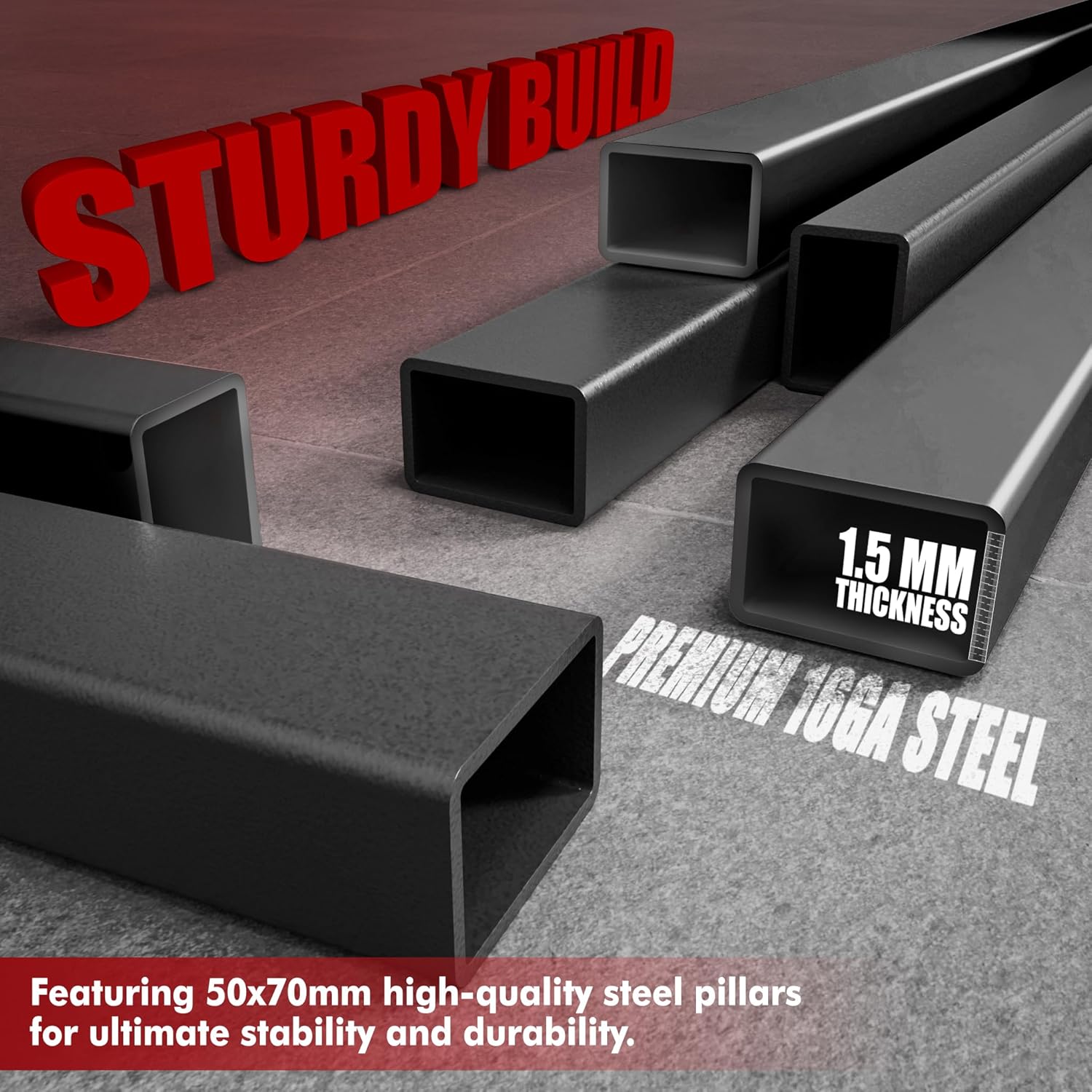 Sturdy and Stylish Construction: Crafted from industrial-grade 50*70mm steel with 1.5mm thickness, this adjustable weight bench’s structural integrity is unmatched. Featuring a beautifully welded frame, it combines durability with a sleek, modern look.