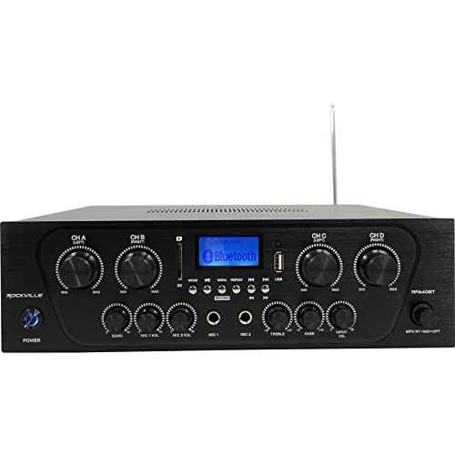 Versatile Playback And Karaoke: Stream music via Bluetooth with a 35 ft range, connect TVs over optical, or plug in CD players and streamers using rear RCA inputs, plus enjoy USB, SD and FM radio for flexible listening. Two front mic inputs with echo, bass and treble controls turn this system into a simple karaoke or paging hub, with record outputs for capturing mixes or feeding additional amplifiers.