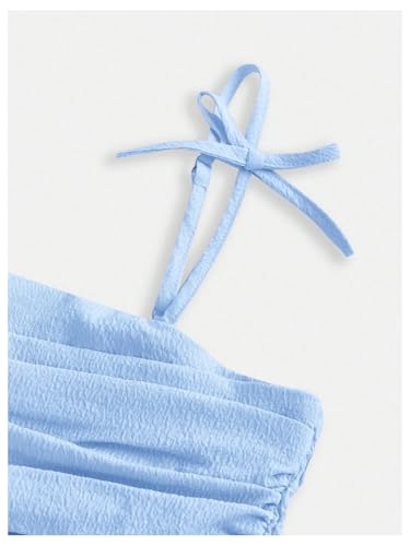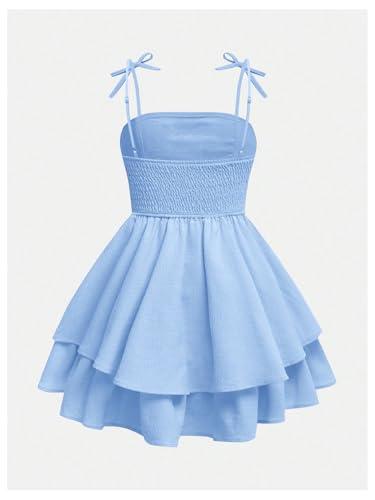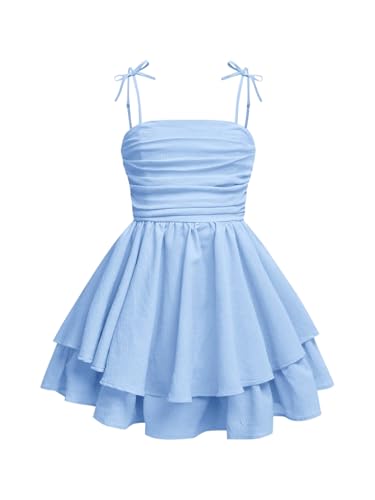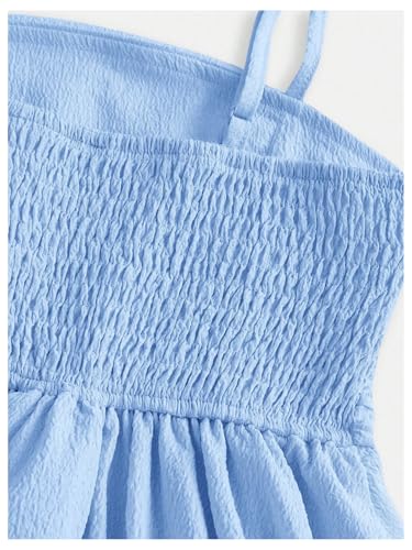 RoseSeek Girl’s Flowy Cami Dress Ruched Sleeveless Pink Layered Ruffle Kawaii Short Smocked Summer Dresses Light Blue 10 Years