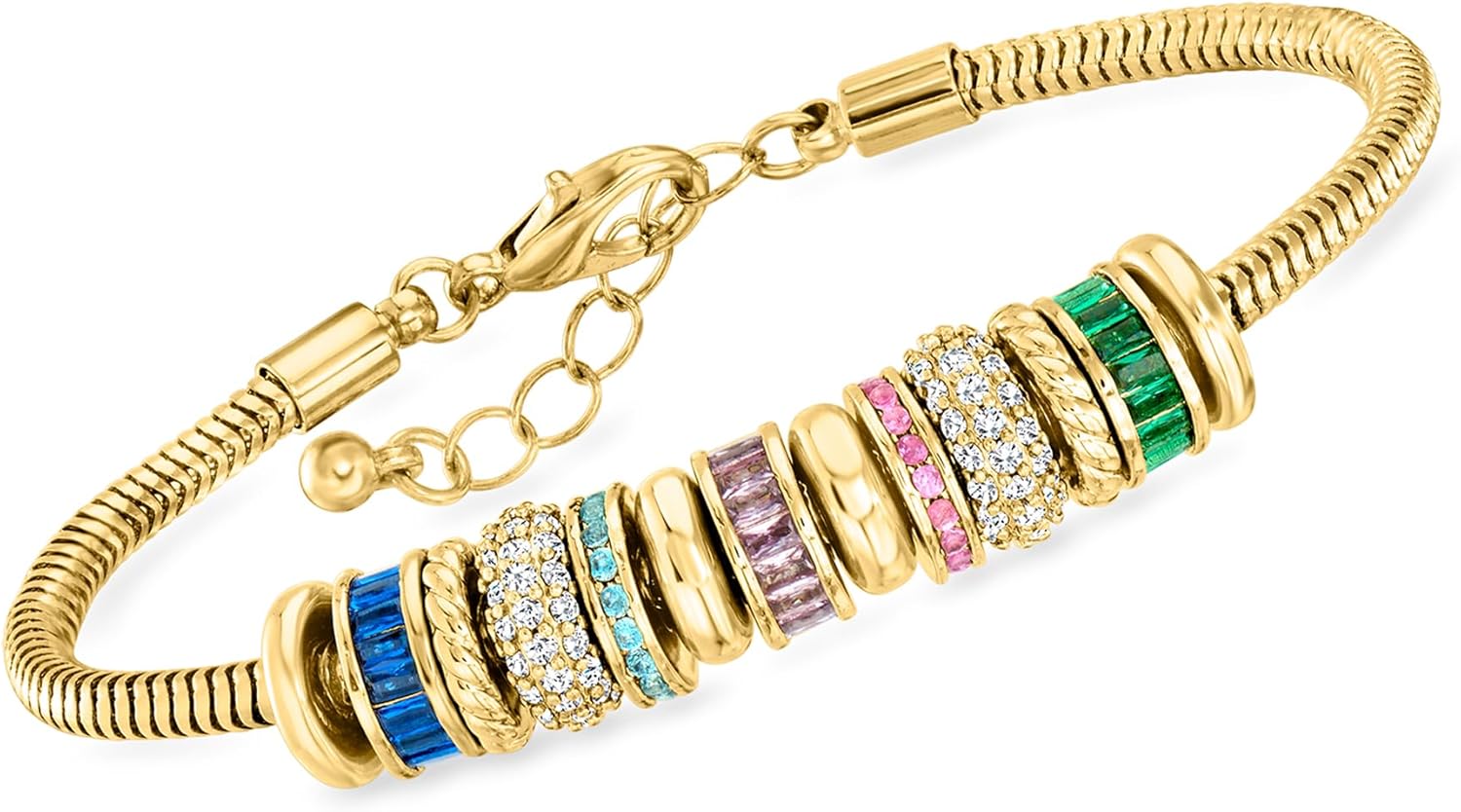Be the first to review “Ross-Simons 14kt Yellow Gold-Plated Rondelle Bracelet With Simulated Multicolored Gemstones. 7 inches”