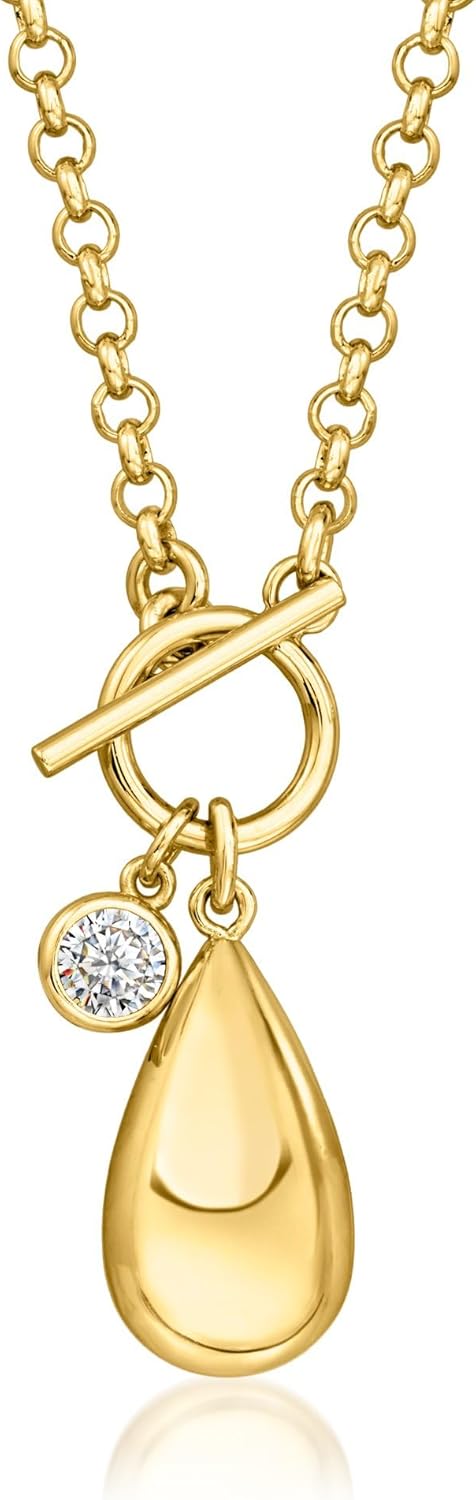 Ross-Simons 14kt Yellow Gold-Plated Teardrop Toggle Necklace With .80 Carat Cz. 18 inches