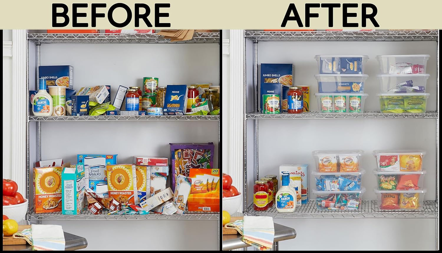 SEE-THROUGH DESIGN: Durable, clear plastic bins make it easy to locate and access frequently used items