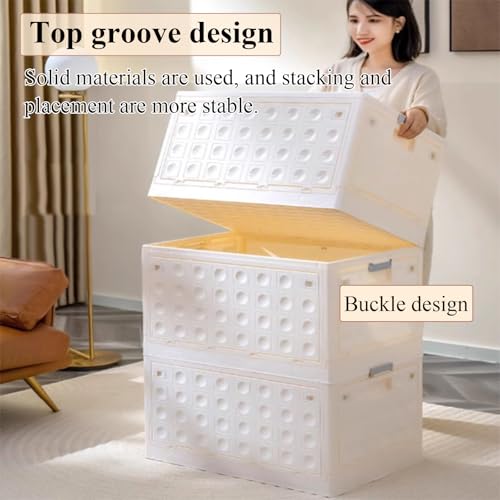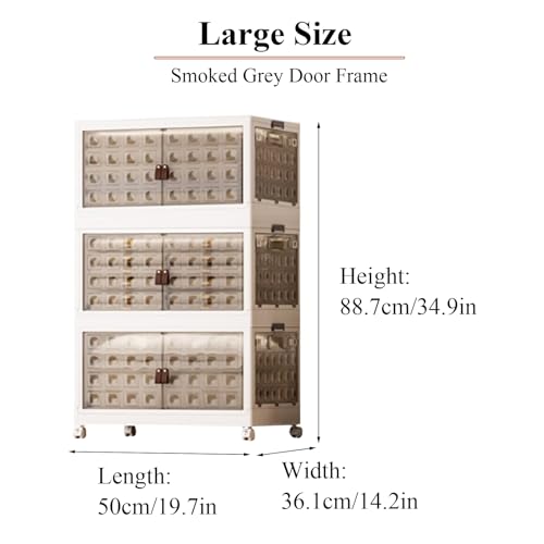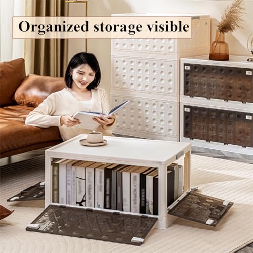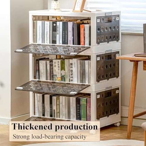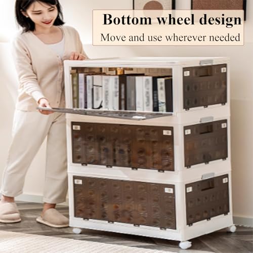 RUJHGL Fold Storage Bins with Lids Plastic Stackable Storage Bins Large Household Storage Box Bins with Doors and Wheels Smoked Ash