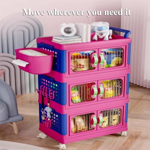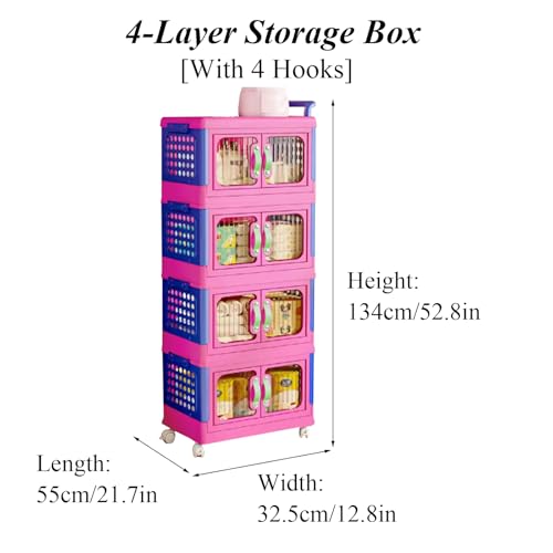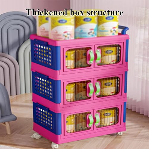 RUJHGL Multi Functional Storage Bins with Lids Plastic Foldable Storage Bins Clear Large Stackable Storage Bins with Doors & Wheels
