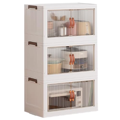 RUJHGL Plastic Storage Bins with Lids Floor Standing Storage Bins with Doors and Wheels Storage Bins Stackable White Nordic Style