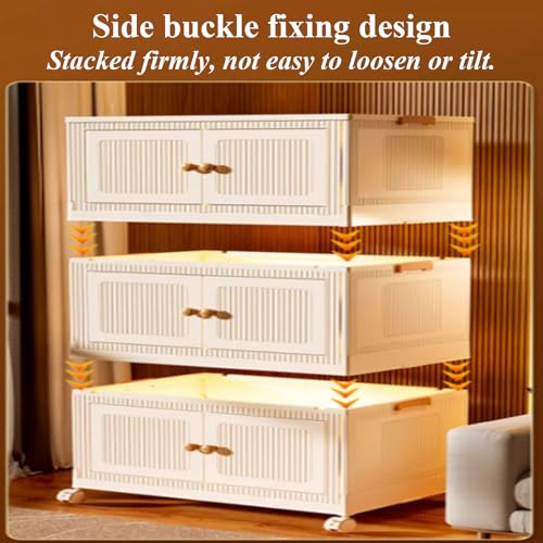 RUJHGL Plastic Storage Bins with Lids with Wheels Stackable Storage Bins Large Storage Bins with Door for Dorm Room Essentials Use