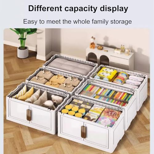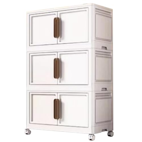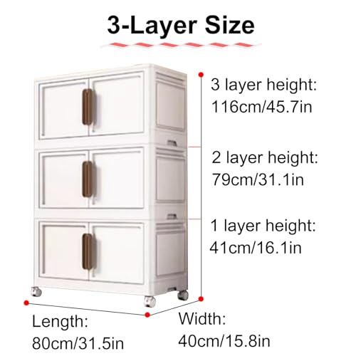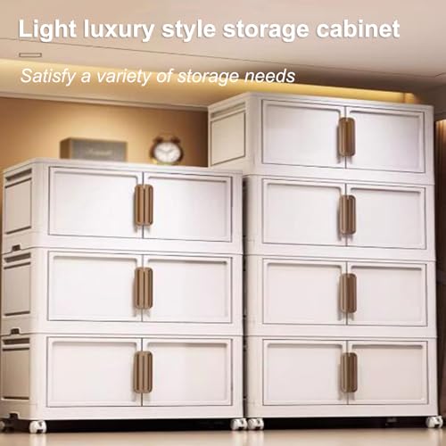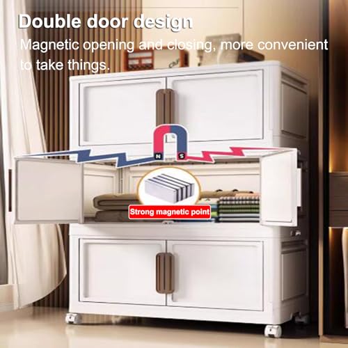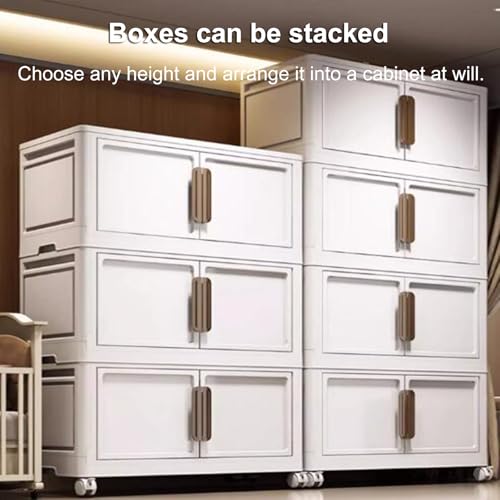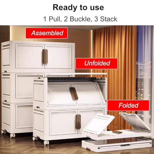 RUJHGL Storage Bins with Lids No Installation Folding Storage Bins Plastic Storage Stackable Bins with Doors & Wheels for Bedroom