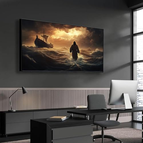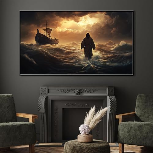 Jesus Canvas Art Wall Decor: Jesus walking on water canvas picture is the perfect choice for those seeking aesthetic artworks. This simple yet elegant jesus wall art will change the atmosphere of your home and leave a lasting impression on your guests