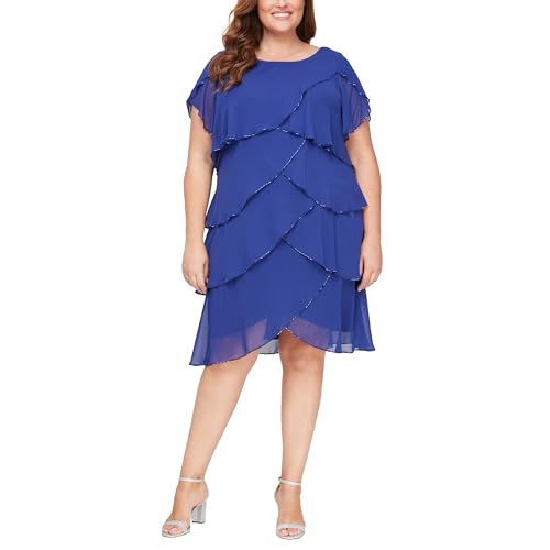S.L. Fashions Women’s Plus Size Capelet Tier Dress with Beaded Detail, Iris, 16W
