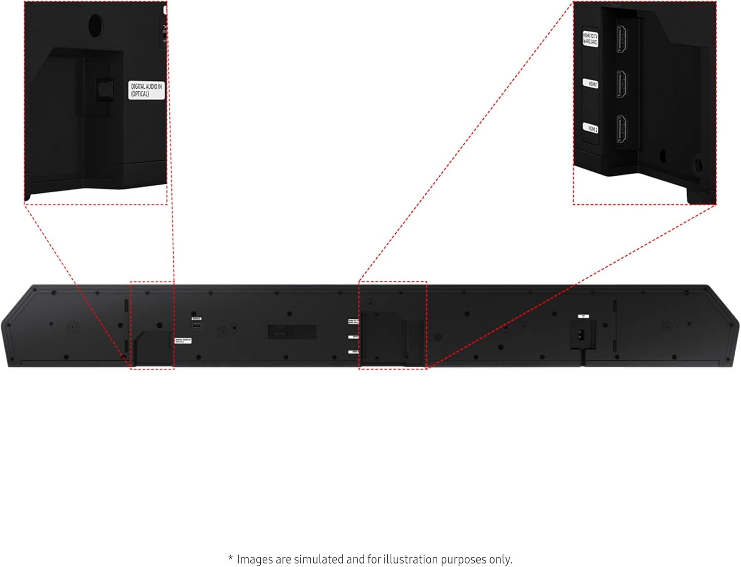 ¹Q-Symphony requires a compatible 2020-2024 Samsung TV. Please refer to samsung.com for more information. ²Compatible with select 2022-2024 Samsung TVs. ³Content Services may vary by region & are subject to change without notification. Amazon, Alexa, and all related logos are trademarks of Amazon.com, Inc. or its affiliates. 4This service is provided by Google and can be terminated at any time. Some features and functions provided by connected devices may be limited or not be supported to use. Content Services may vary by region & are subject to change without notification. 5This Samsung Soundbar supports AirPlay2 and requires iOS 11.4 or later. Apple, and AirPlay are trademarks of Apple Inc., registered in the U.S. and other countries. 6Compatible with Gaming Hub and select gaming consoles (e.g. Xbox X, PS5). Game console sold separately. 7Tap sound is only compatible with select Samsung mobile devices, with Android 8.1 and above. Tap Sound requires SmartThings app to activate and set up. This service only works when Soundbar and mobile are on.