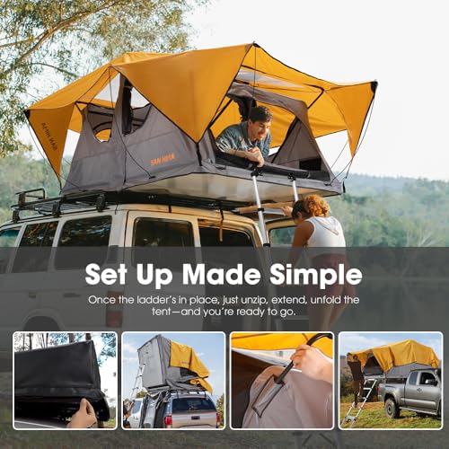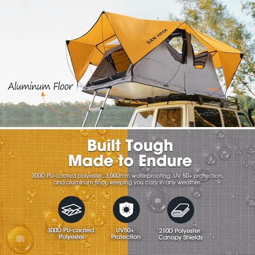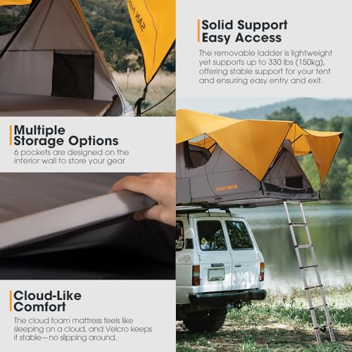 San Hima Alpine Aluminium Rooftop Tent – 3 Person, 4 Season, Soft Shell, 360 Skyview Windows, 82 x 54 Inch Floor, 81.4 LBS, Car SUV Truck Camping
