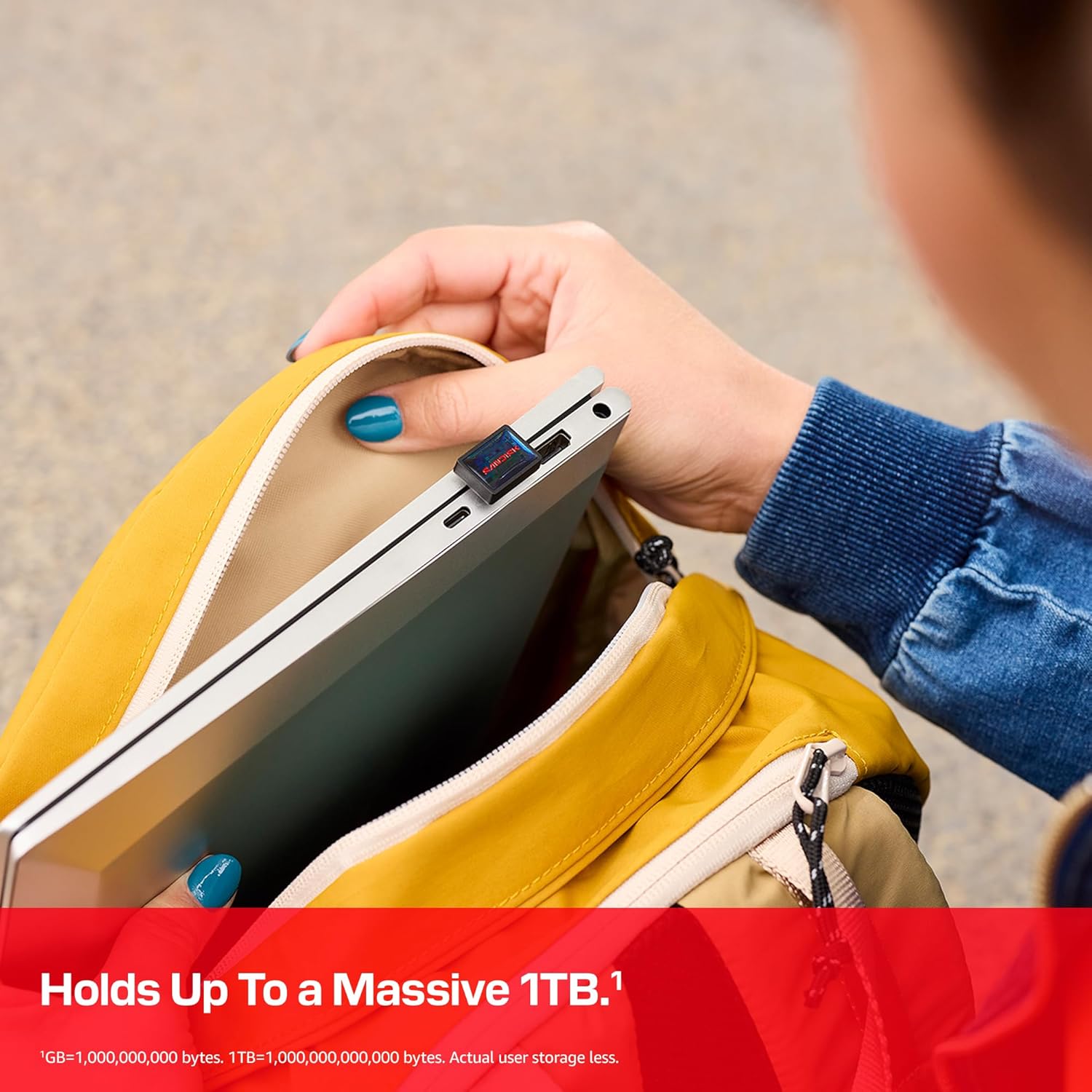 Plug-and-stay USB-C storage has never been so petite. The SANDISK Extreme Fit USB-C Flash Drive is a compact, high-capacity drive that seamlessly blends into your digital life. Perfectly compatible with USB-C devices, it’s your go-to for effortless file storage and transfers across computers and tablets. Despite its tiny size, it packs a punch with up to 128GB(1) of storage, making space for your photos, videos, documents, and more. Enjoy rapid file transfers thanks to USB 3.2 Gen 1 speeds of up to 400MB/s (128GB – 1TB)(2). Plus, with the SANDISK Memory Zone app(3) for Windows and Mac devices, managing and backing up your files is a breeze, giving you even more confidence that you’re prepared for anything. (1)1GB=1,000,000,000 bytes. 1TB=1,000,000,000,000 bytes. Actual user storage less. (2) Based on read speed, unless otherwise stated. 1 MB/s = 1 million bytes per second. Based on internal testing; performance may vary depending upon host device, usage conditions, drive capacity, and other factors. USB 3.2 port required. (3) Download and installation required. Set up automatic backup within app settings. See official Sandisk website for app details. (4) See www.sandisk.com/wug for additional details. (5) Based on dimensions as of June 24, 2025.