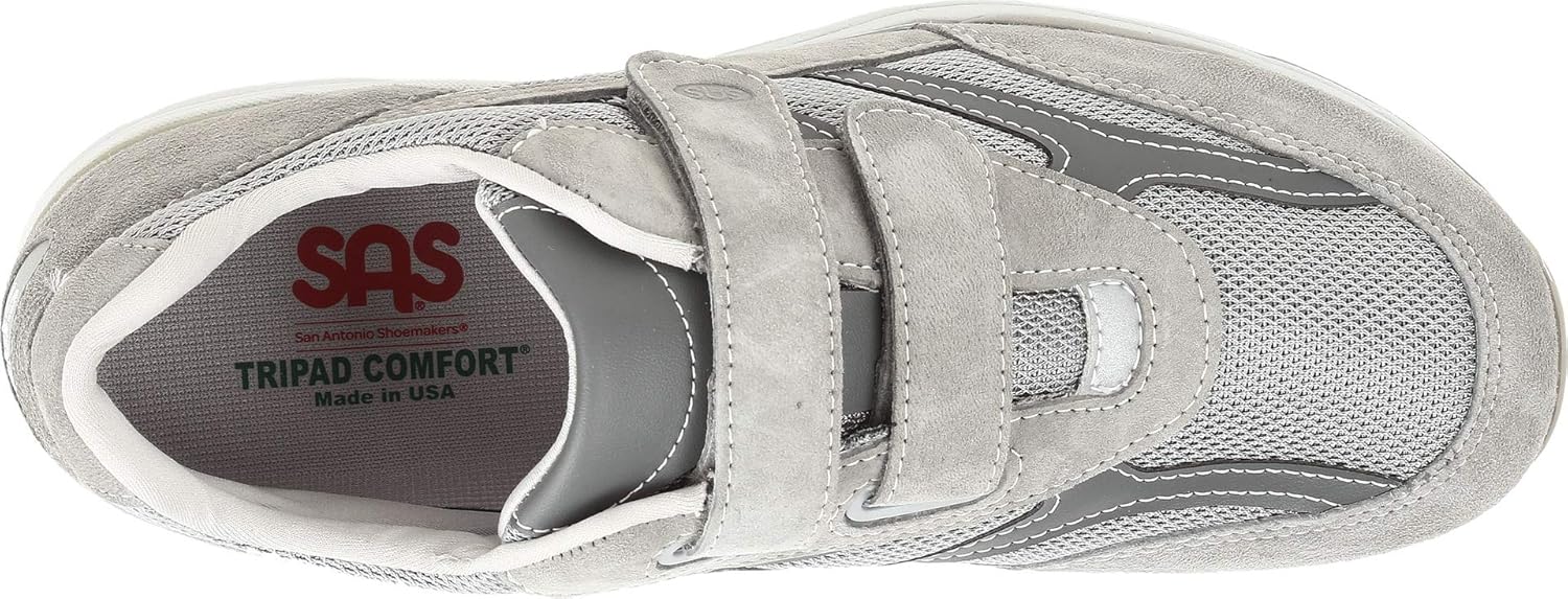 Sporty comfort has never looked as good with the SAS JV Mesh sneaker. This style is a Medicare and Diabetic approved shoe. Durable suede and mesh uppers in a sporty silhouette. Cushioned tongue and collar for a cozy fit. Two vamp straps offer hook-and-loop fasteners for maximum adjustability. Soft and breathable textile linings. A removable SAS CoolStep Footbed features an anti-friction lining that provides a cool surface underfoot with a moisture-wicking bottom layer designed to keep your feet cool and dry. Features SAS Tripad Cushions designed to comfort all three pressure points: the inside ball, outside ball and heel for all-day support. SAS Arcfit Heel Stabilizer provides firm yet gentle support on all surface types. Lightweight, shock-absorbing, and flexible SAS SteadyTrac Midsole offers a forepart stabilizer for added lateral stability. Durable and non-marking rubber SAS Comfort Outsole provides maximum grip. Made in the USA. Medicare/HCPCS code = A5500 diabetic shoe.