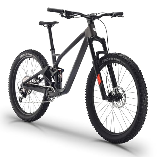 【Lightweight Carbon Fiber Frame】Carbon fiber frame integrates a reinforced rear triangle with dual-link suspension and internal cable routing, reducing wind resistance while strengthening structural integrity. The dual-link system directs rear wheel movement along a controlled path, working with the frame’s natural flex to absorb shocks and maintain tire contact on rough terrain. Lightweight yet robust, the design ensures stable high-speed off-road performance and precise cornering control.