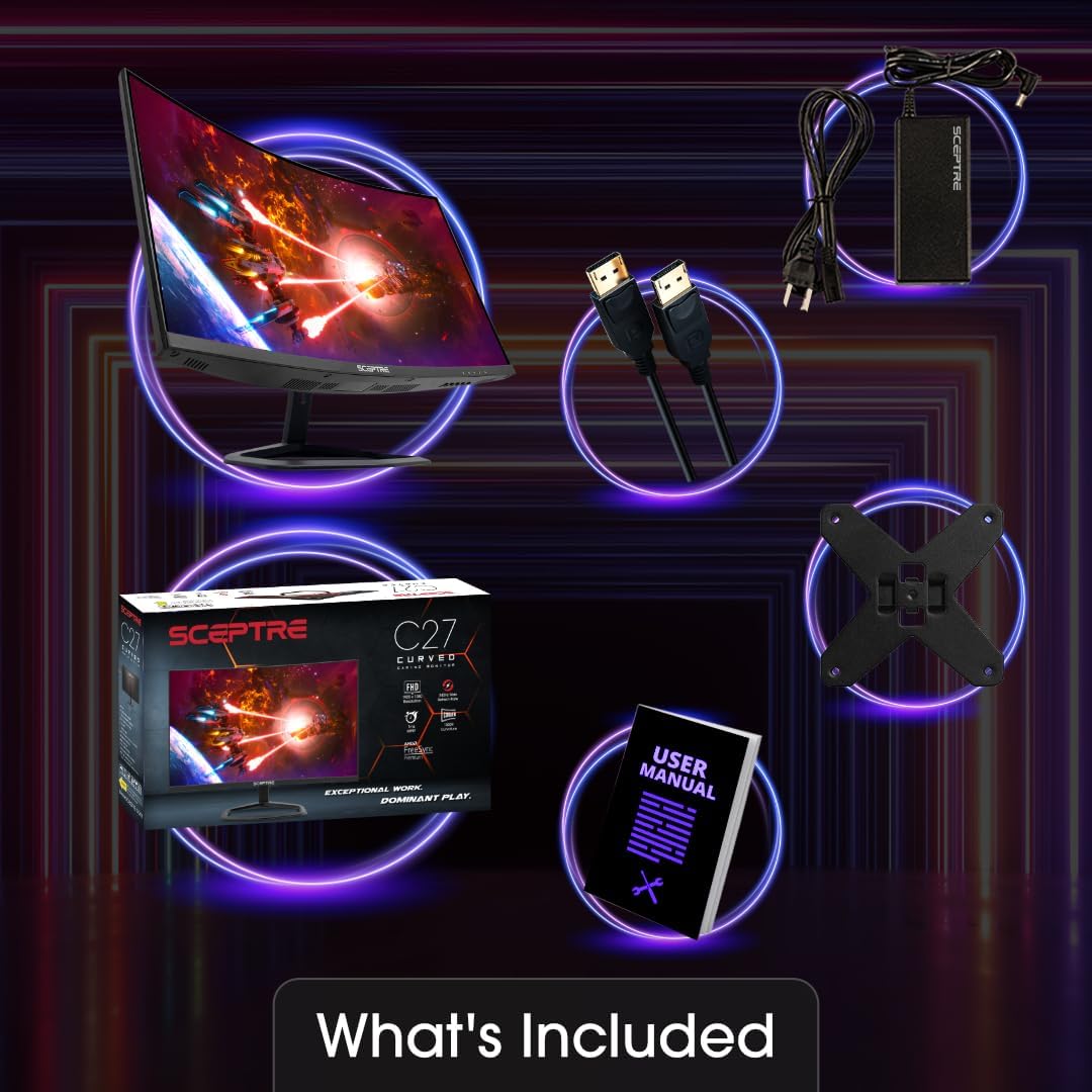 Specification: Sceptre New 27-inch Curved Gaming Monitor FreeSync 240Hz Plus DisplayPort HDMI 1ms 99% sRGB Build-in Speakers, R1500 Machine Black 2025 (C275B-FWT240 Series)