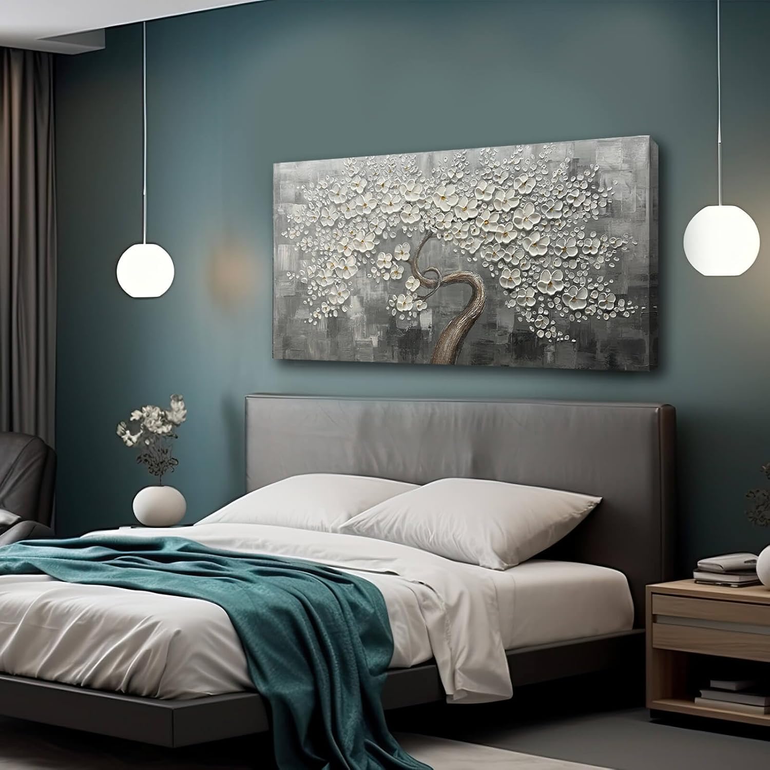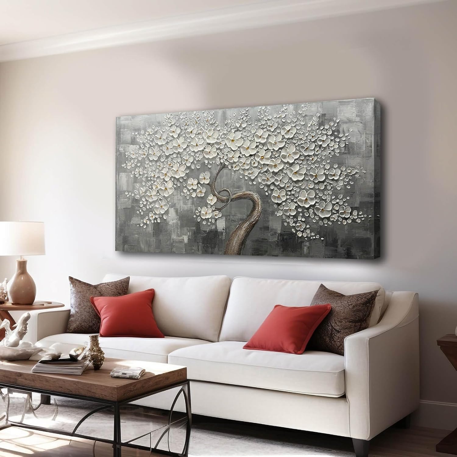 Size and Package: 24×48 inch , White Flower Wall Decor can be hung directly with the mounting hardware. Each canvas panel is handled with care, your paintings will be carefully packaged in cardboard to ensure they reach you in perfect condition